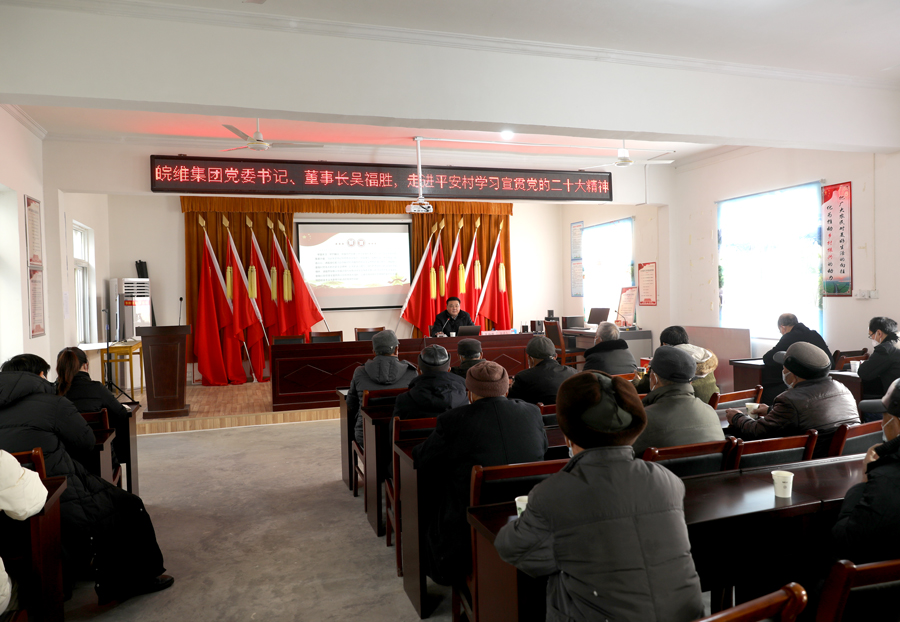 12月30日是2022年最后一個(gè)工作日,皖維集團(tuán)公司黨委書(shū)記、董事長(zhǎng)吳福勝不辭辛苦,從繁忙的事務(wù)中抽身,前往槐林鎮(zhèn)平安村,為平安村黨員宣講黨的二十大精神,調(diào)研全年鄉(xiāng)村振興工作。集團(tuán)公司黨委副書(shū)記張正和,公司辦公室、黨委工作部負(fù)責(zé)人陪同。